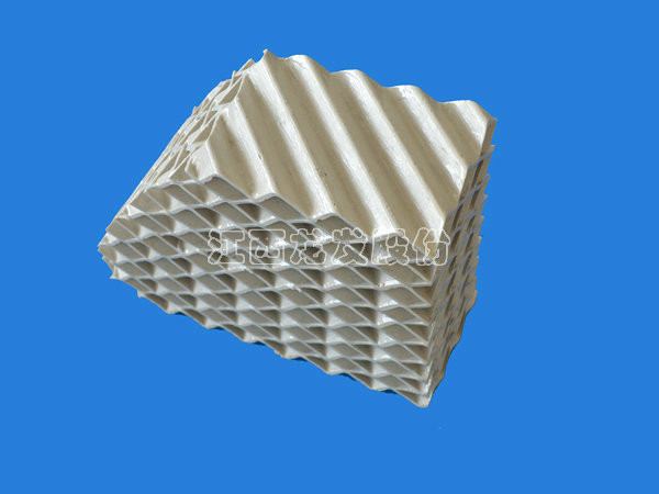 陶瓷規(guī)整填料是一種在培內(nèi)以均勻幾何圖形排布,整齊堆砌的培填料。規(guī)整填料主要是取代塔內(nèi)散堆填料,解決阻力大、比表面積小,傳質(zhì)效能差、易破碎等突出問(wèn)題。它規(guī)定了氣液流路.改善了淘流、壁流和潤(rùn)濕性能.降低了阻力,同時(shí)提供更多的氣液接觸面積從而提高了傳質(zhì),傳熱效果。可廣泛用于煤氣洗滌塔.焦化洗滌,洗苯、洗氨培、化肥熱氣飽和、脫硫酸、硫酸干燥、吸收塔等。陶瓷波紋規(guī)整填料是用硬質(zhì)瓷構(gòu)成,主要成分粘土、石英、長(zhǎng)石等經(jīng)特殊烘燒而成。其形成是由許多具有相同幾何形狀的單元體波紋片相互平行,叉疊加組成。